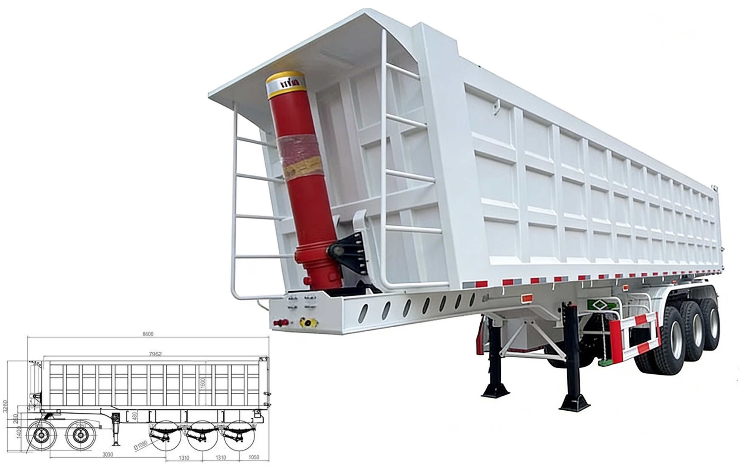 HYVA Premium Hydraulic System: Features a front-mounted, multi-stage hydraulic cylinder that ensures a lower, more stable center of gravity. It delivers powerful lifting force and smooth, controlled unloading, effectively mitigating the risk of vehicle rollover.