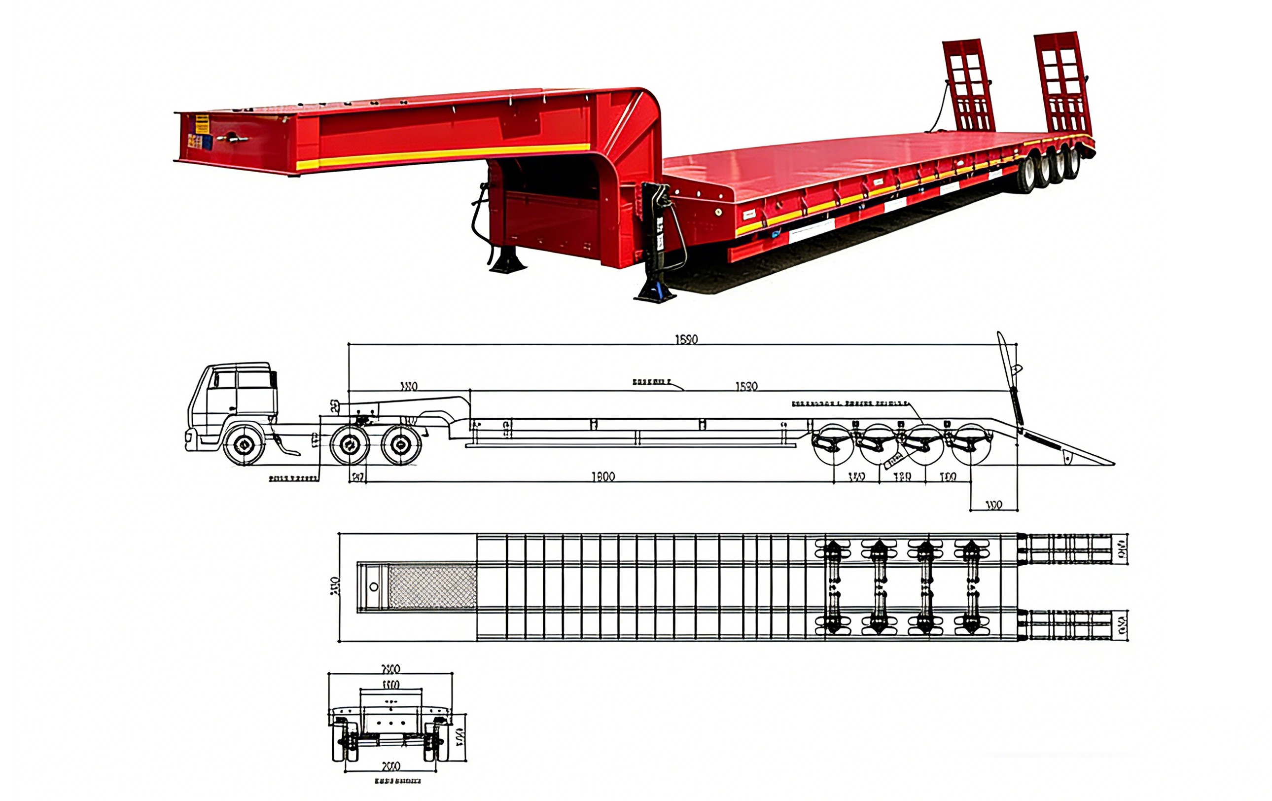 4-Axle Reinforced Running Gear: Paired with heavy-duty, thickened leaf spring suspension.