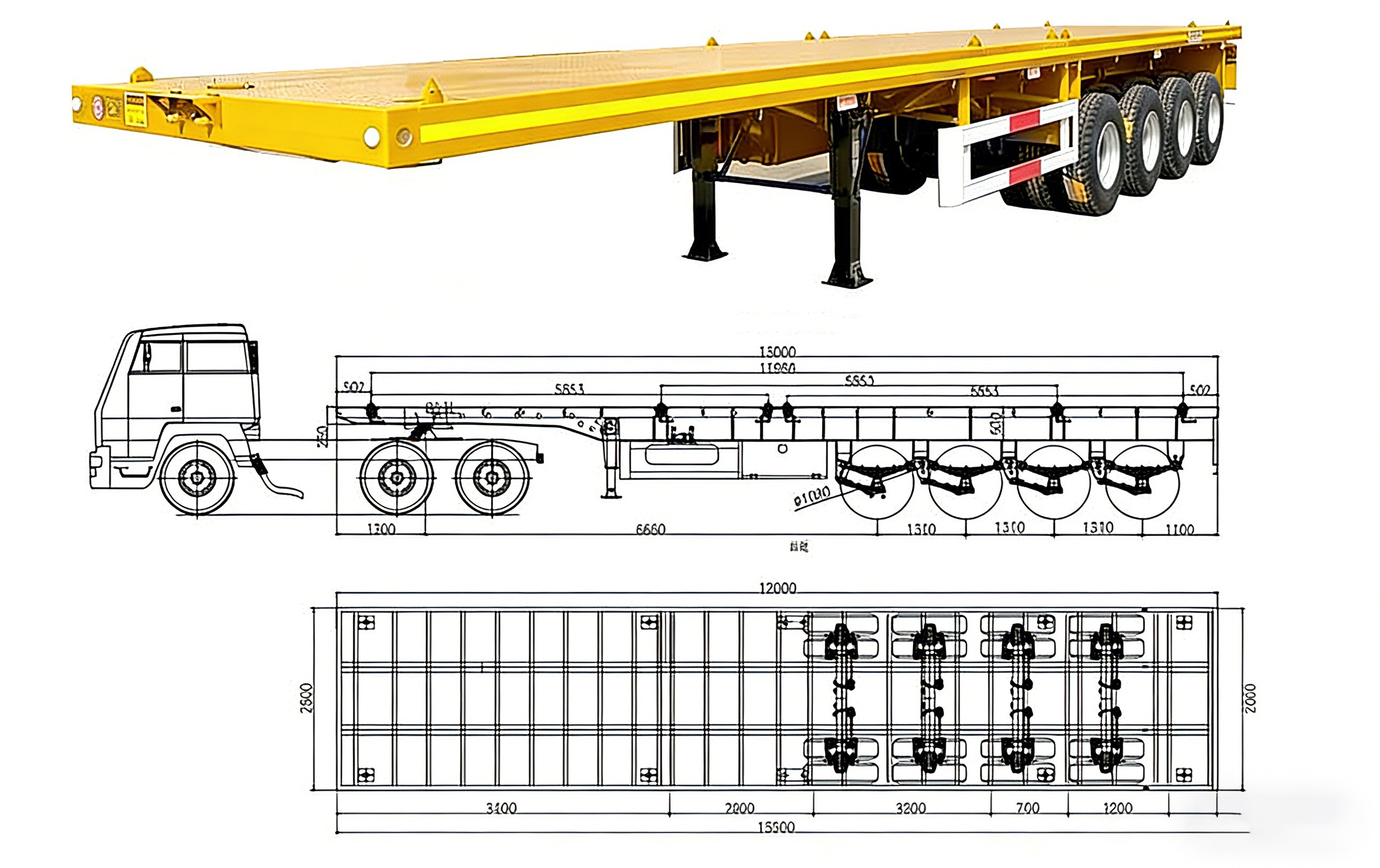 Flooring Construction: Utilizes 3mm or 4mm patterned floor plates to enhance friction, ensuring containers or large cargo remain stable during transport.