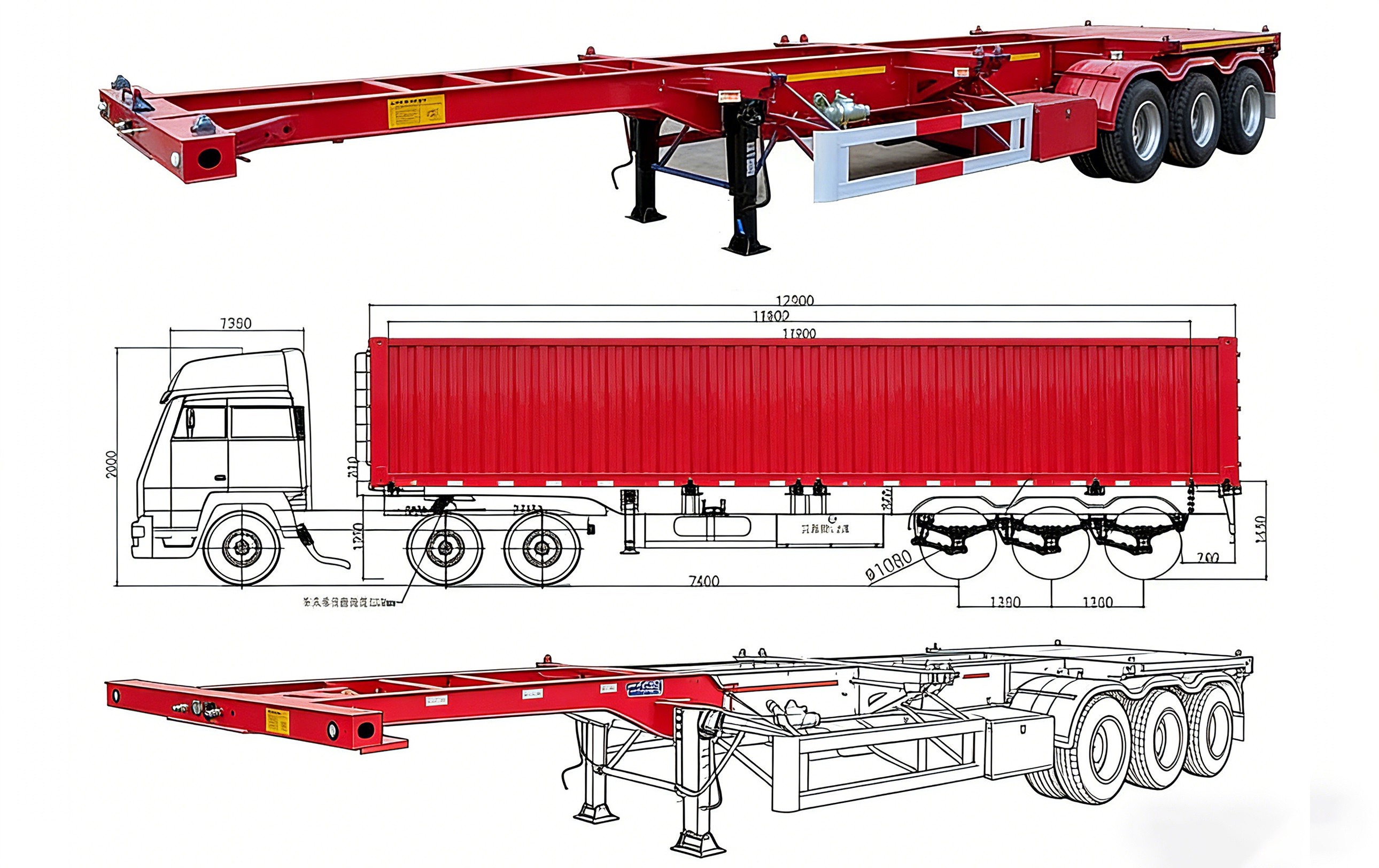 3.Multi-Freight Transport: Flexible combination of 12 sets of container locks allows for the transport of a single 40ft or two 20ft heavy-duty containers.